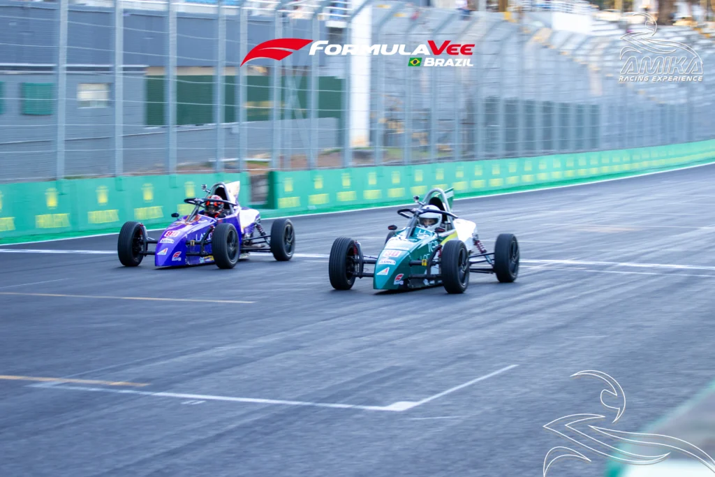 Com um começo de prova acirrado na Corrida 1, Simões e Águila travaram boa disputa, mas o experiente piloto conseguiu se aproveitar de um pequeno erro do segundo colocado e aproveitou a vantagem para garantir a vitória na categoria FVee Geral e FVee Master.