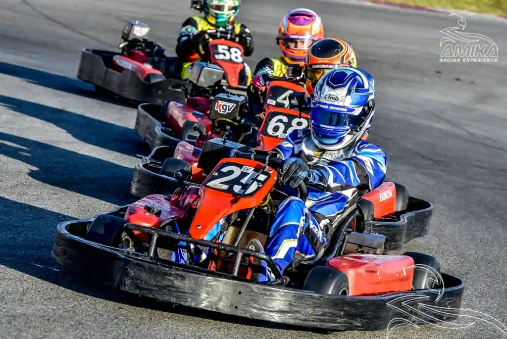 Essa é uma dúvida comum. Na verdade, o iniciante costuma ser o mais cauteloso na pista. Por isso, os campeonatos da AMIKA, por exemplo, contam com categorias voltadas exclusivamente para novatos, separando por peso e nível de experiência. Isso garante corridas equilibradas, seguras e sem o risco de confronto com pilotos mais experientes.