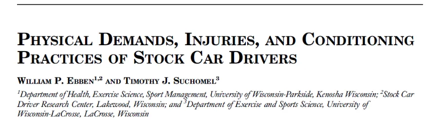Nesse sentido, os pesquisadores William P. Ebben e Timothy J. Suchomel (Centro de Pesquisa de Pilotos de Stock Car e Universidade de Wisconsin) realizaram um estudo muito interessante, com a proposta de avaliar as demandas físicas, lesões e condicionamento físico de pilotos da Stock Car. Foram entrevistados 40 pilotos de 27 estados dos Estados Unidos da América. Os resultados mostraram que a força de membros superiores foi considerada, pelos pilotos como a demanda física mais importante. Os pilotos também relataram que é comum se sentirem exaustos após a corrida, bem como dor e fadiga nos músculos do ombro. As lesões na região lombar e tronco são as mais frequentes, embora as lesões na cabeça são as que mais demandam atenção médica. O treinamento de força e cardiovascular, foram os tipos de exercícios mais realizados pelos pilotos, os quais de uma forma geral, demostraram elevada motivação para realizar treinamentos para melhorar a performance nas corridas. Muitos pilotos tinham antecedentes atléticos, sendo que o futebol americano foi identificado como o esporte mais frequentemente praticado antes do automobilismo.