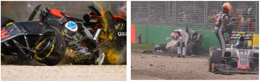 Impressionante acidente do Fernando Alonso no GP da Austrália da F1 em 2016. Evidentemente a segurança dos carros atuais de F1 foi o ponto chave para a sobrevivência do piloto, porém a condição física foi essencial para suportar o impacto de 46G e ainda sair sem auxílio dos destroçoes da McLaren! (Imaem: globoesporte)