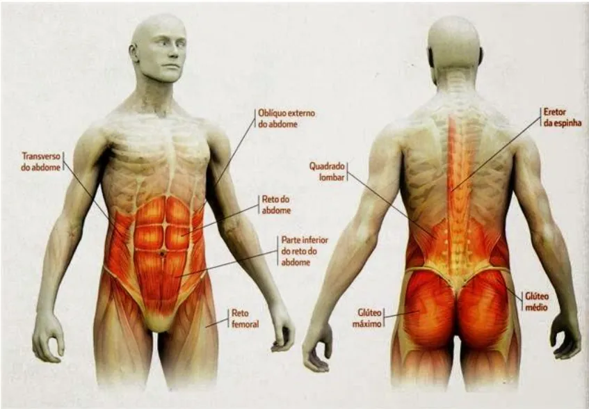 Ilustração com destaque nos músculos que compõem o CORE (Imagem: Google)
