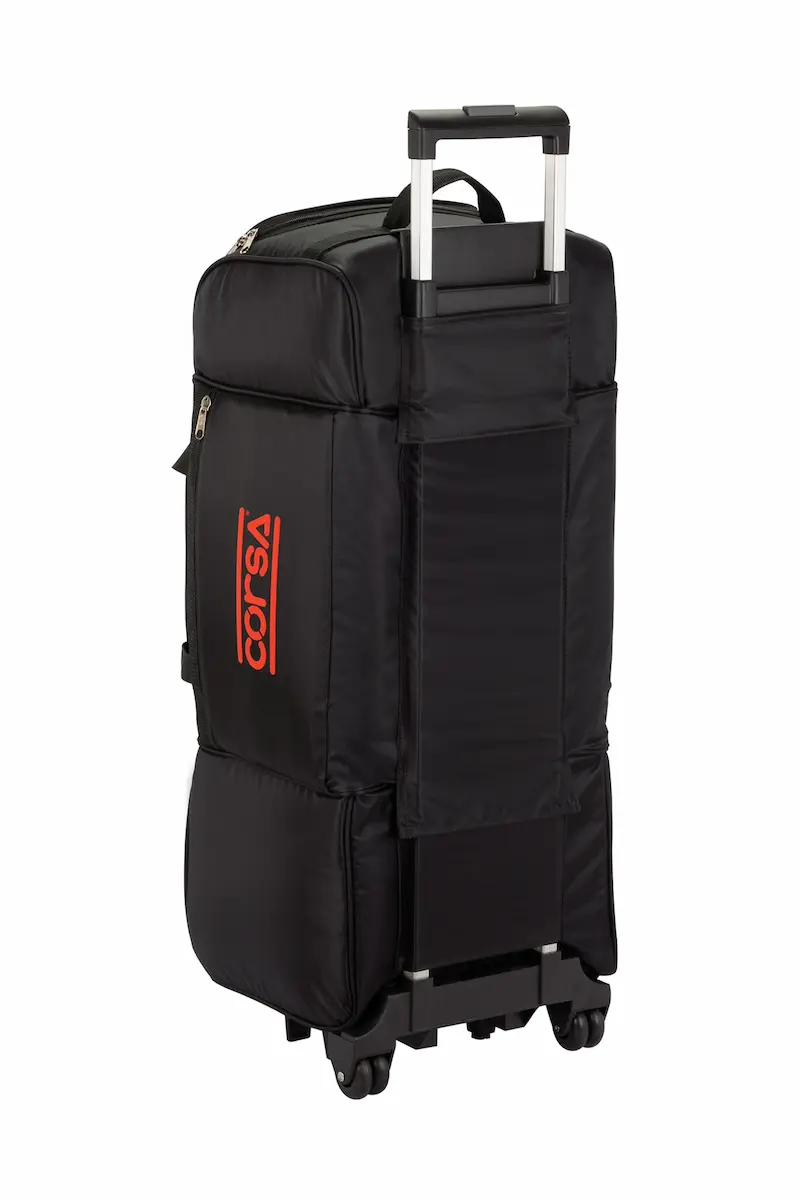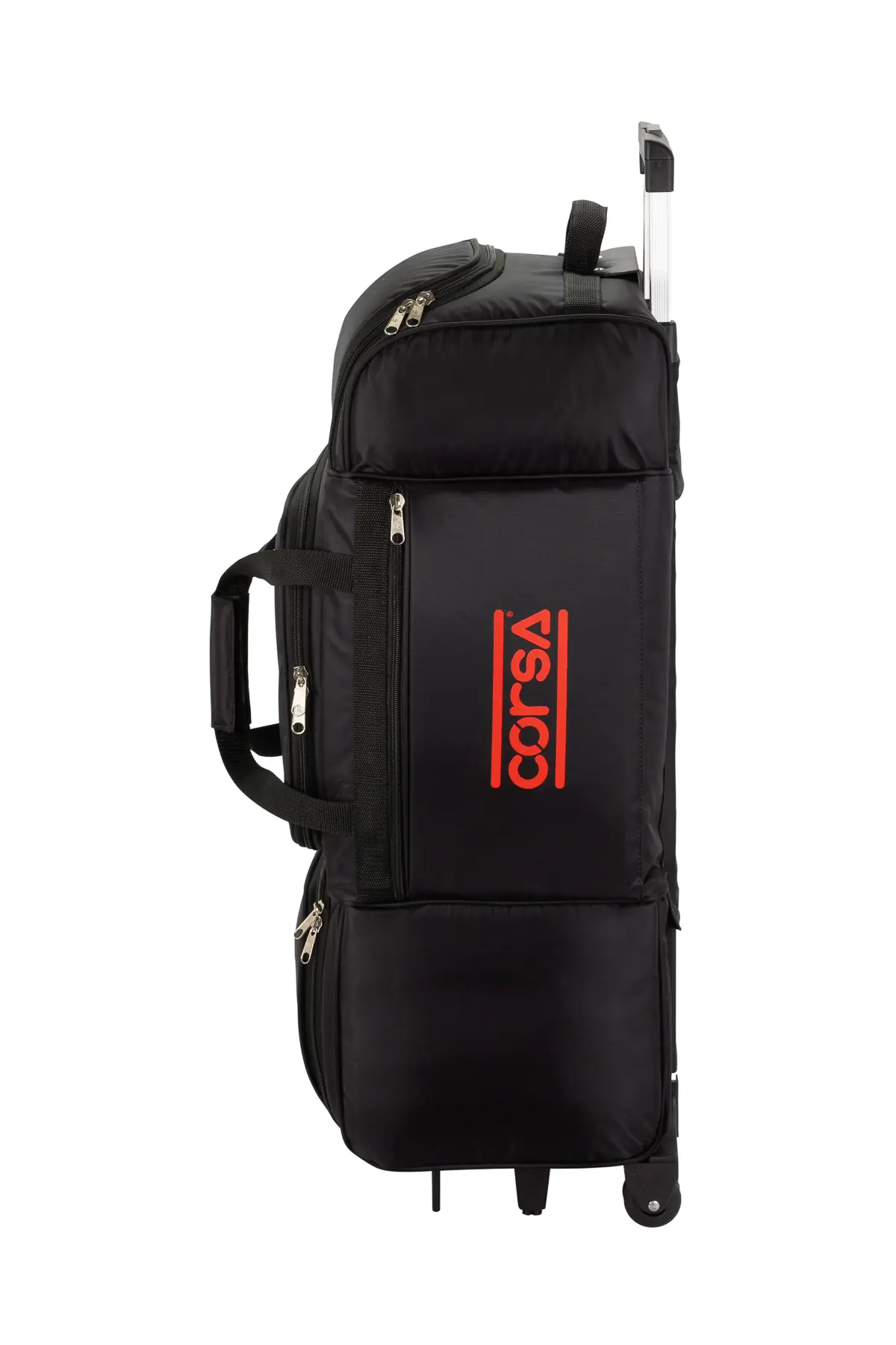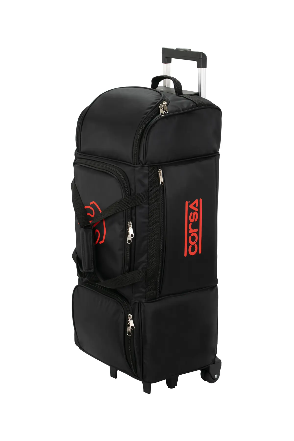 A Mala de Rodinhas Corsa tem diversas divisórias e bolsos para garantir muito espaço para acessórios e vestuários. Com design moderno e material resistente, a mala proporciona segurança, conforto e estilo para suas viagens. O compartimento inferior possui revestimento interno para proporcionar proteção a objetos delicados. Possui puxador com trava e alça para carregar a mão.Capa de chuva para pilotos de kart